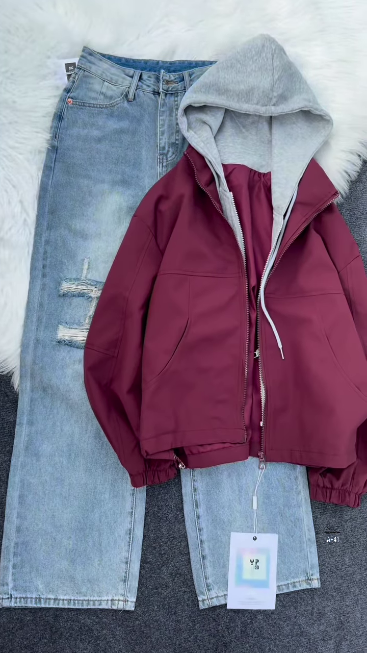 Completing the look is a navy blue jacket with elastic cuffs and a structured silhouette. The jacket adds contrast and polish, elevating the outfit from casual to curated. It’s lightweight enough for layering but bold enough to stand alone—ideal for boutique campaigns or street-style shoots.